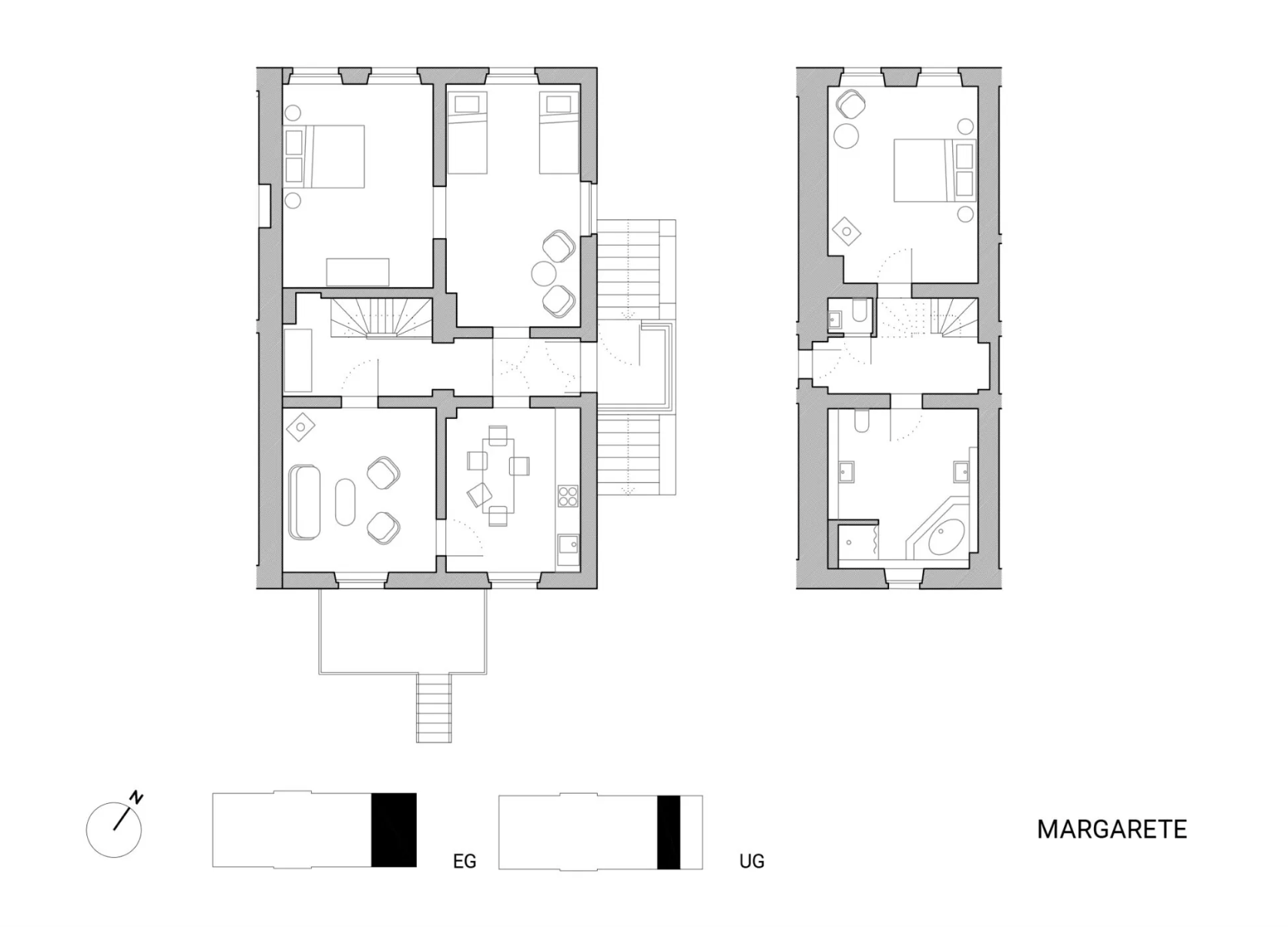 Margarete is like a little house of its own. The apartment is an independent unit with its own private entrance. It was built later as an extension to the manor. It extends approx. 130 m² over two floors. The kitchen is well equipped with a dining table, gas stove and dishwasher. The spacious bathroom on the lower floor has a large bathtub. There is a large wood-burning stove in the living room and the manor house garden can be accessed directly via the balcony stairs.