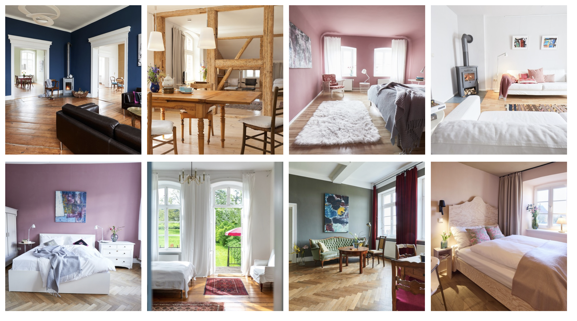 No two rooms are alike. Gut Pohnstorf offers accommodations in 8 individually decorated apartments (25–130 sq m) and 2 stylish hotel rooms that blend historic charm with modern design. Each room is named after a remarkable woman from the 19th century—from Marie Curie to Clara Schumann.