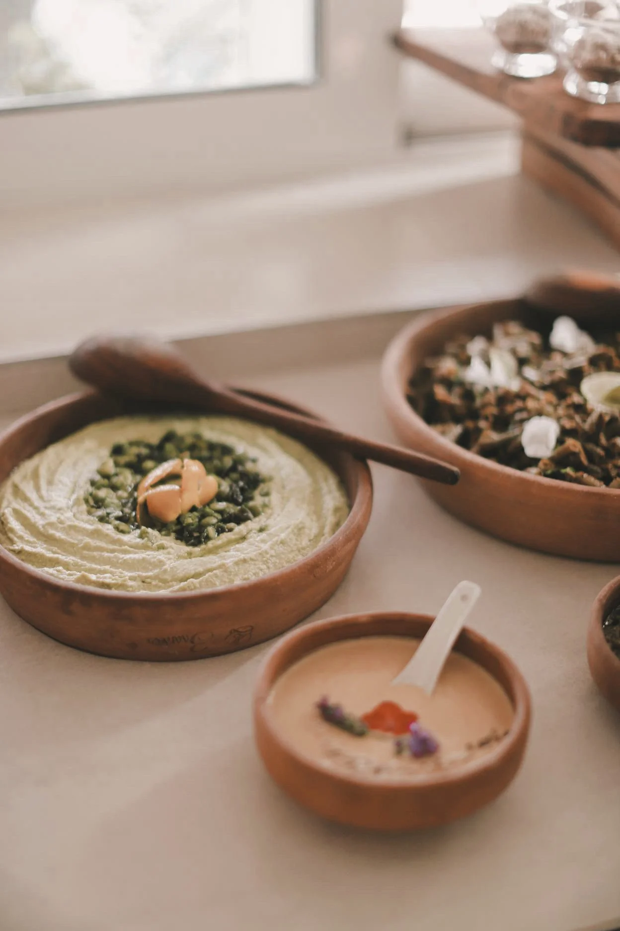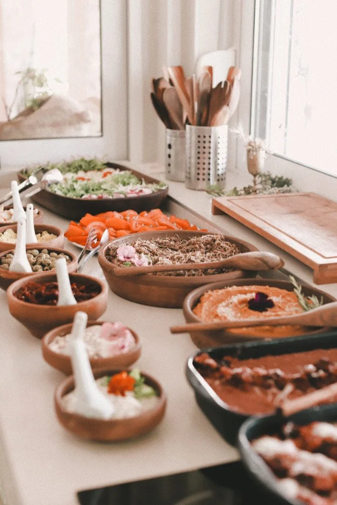 2 daily homemade vegan buffets (served at 10:00 & 17:00) - incl. a variety of dishes: freshly baked bread, vibrant salads made with homegrown vegetables, nourishing mains, and flavorful spreads