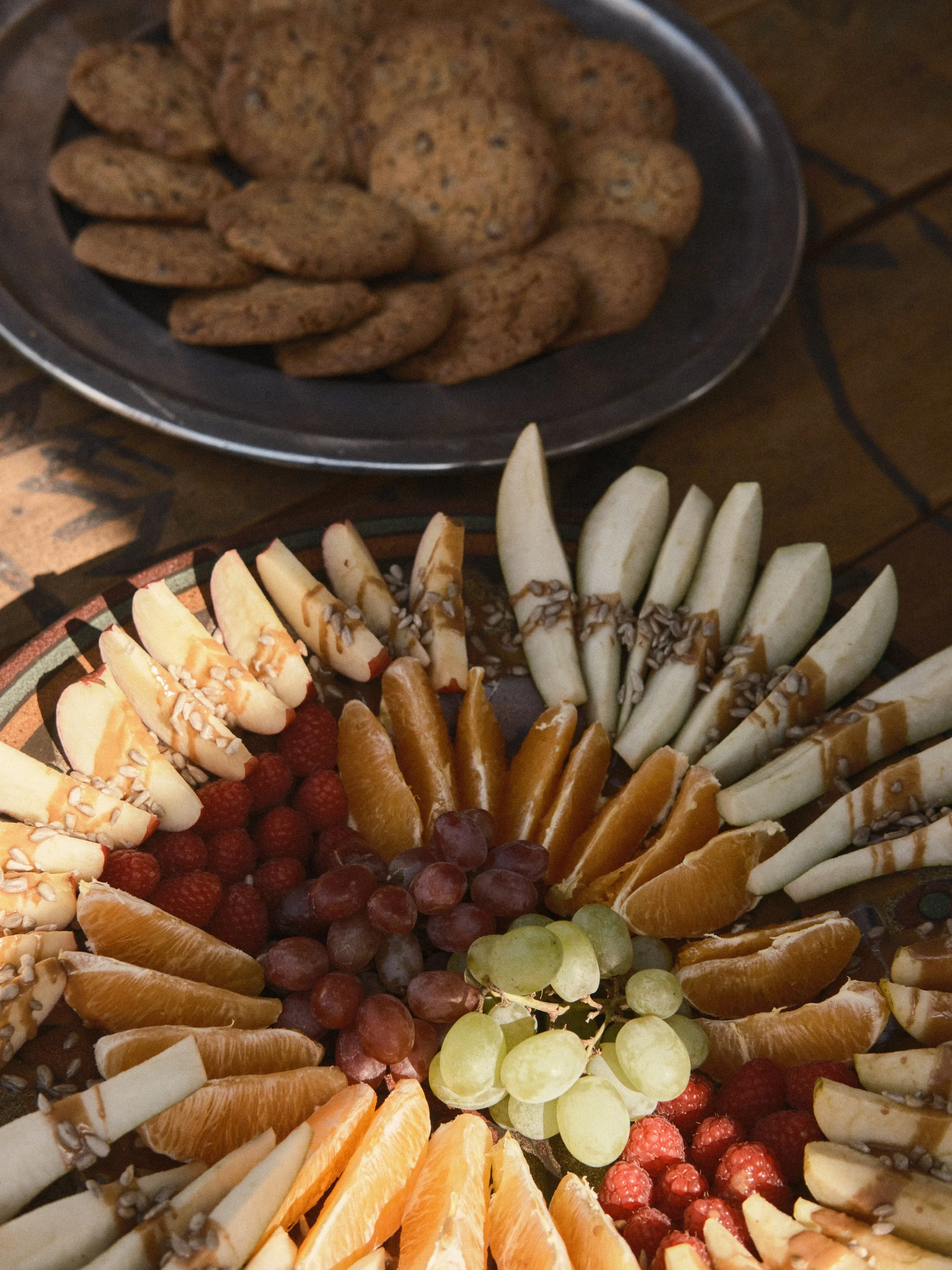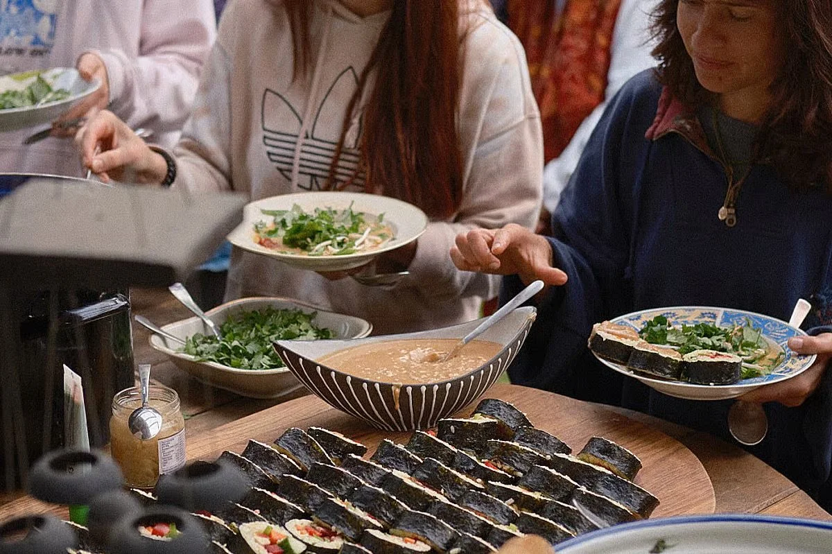 During your stay at Sonnenhaus, you will be treated to fresh and plentiful vegetarian meals for brunch and dinner. In the afternoon, healthy snacks will be served along with tea, coffee, and Cosmika hot chocolate.